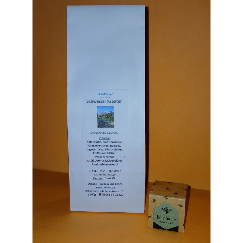 Schweizer Kräutertee 100g + 1 Praline Minze
