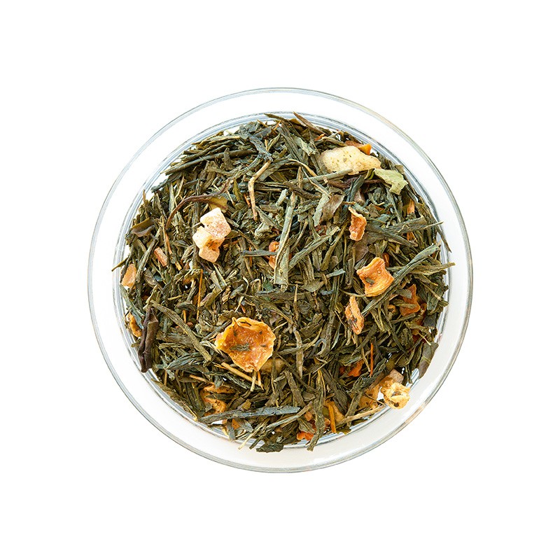 Zutaten: Grüntee 63 %, Bananenchips, Karottenflocken, Papaya-stücke, Apfelstücke, Ananasstücke, Catuaba 2 %, Aloe Vera 2 %, natürliche/ naturidentische Aromen
