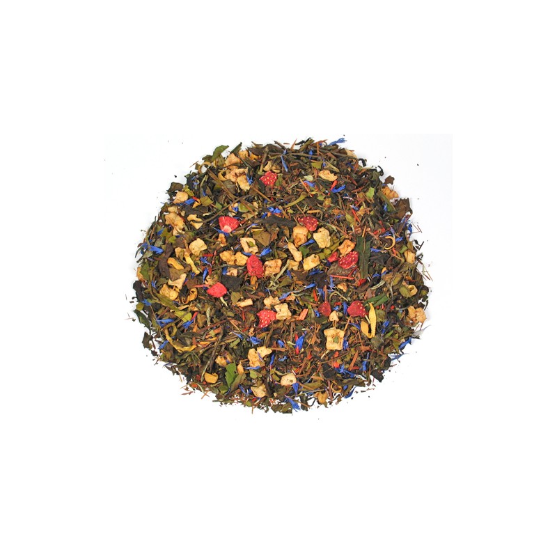 Weisser Tee (37%), Grüntee (20%), Apfelstücke (15%),